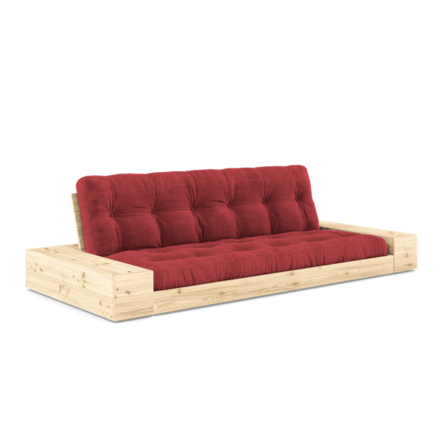 Karup Design Base Sovesofa med Sidekasse og Lags Madras i Klar Ruby Red er en ideel løsning til moderne hjem. Denne sovesofa kombinerer stil og funktionalitet på bedste vis.