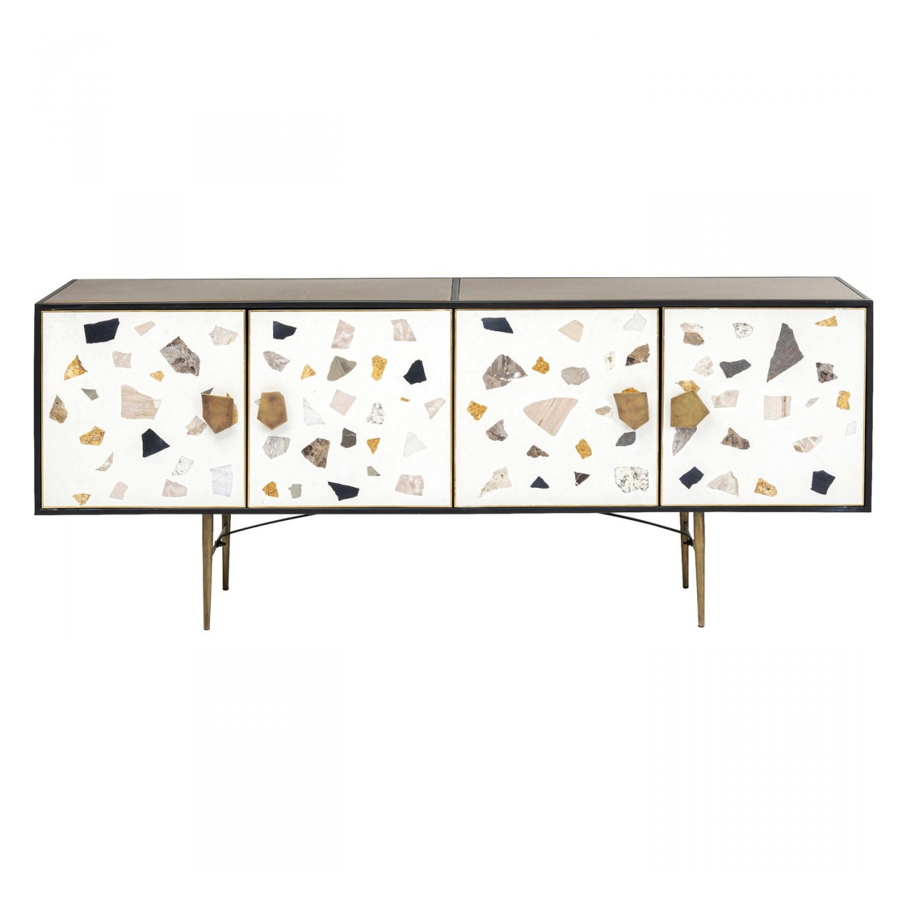 Stilfuld rektangulær terrazzo skænk fra Kare Design. Denne skænk er håndlavet og kombinerer multifarvet terrazzo med messingbelagt stål. Hvilket giver et unikt og moderne udtryk.